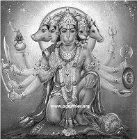 Anjaneya has five faces (Pancha Mukha) and ten weapons. The five faces